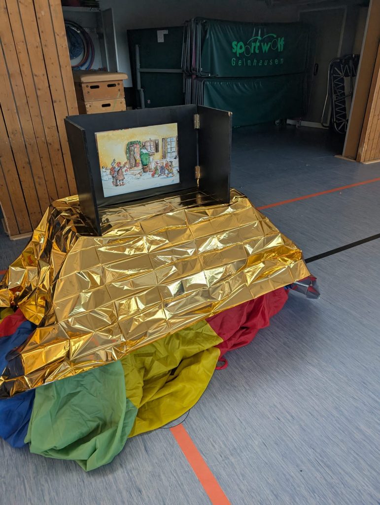 Los ging es mit einer Geschichte im Kamishibai-Theater.